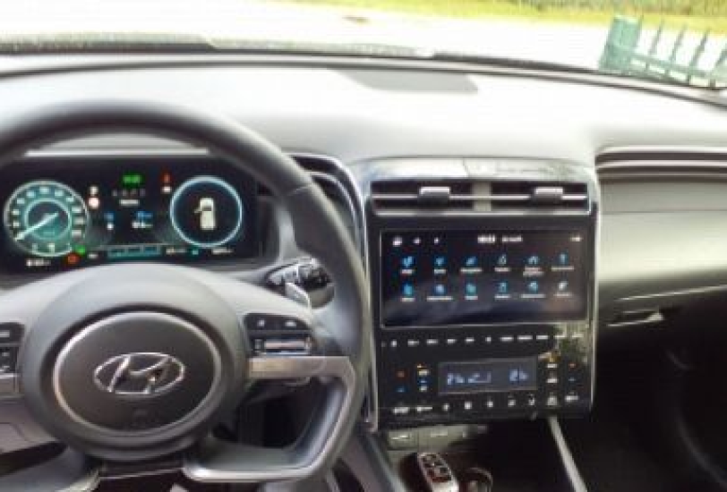 Este Hyundai Tucson no solo es potente y eficiente, sino también increíblemente cómodo y equipado. Su techo panorámico te permite disfrutar de la luz natural y las vistas panorámicas durante tus viajes. Su sistema de climatización automática de 2 zonas garantiza una temperatura agradable para todos los ocupantes. Además, cuenta con asientos calefactables, volante calefactado y tapicería de tela negra para un confort superior. El maletero con separación asegura que tus pertenencias estén organizadas y seguras. Este SUV está diseñado para ofrecerte el máximo confort en cada trayecto.
