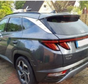 El Hyundai Tucson presenta un diseño moderno y atractivo que destaca en la carretera. Sus cristales oscurecidos le dan un toque de privacidad y elegancia. Las llantas de aleación complementan su estilo deportivo. Los rieles de techo añaden funcionalidad para transportar equipaje adicional. Además, cuenta con faros LED y luces diurnas LED para una visibilidad óptima. El color exterior DARK KNIGHT le confiere un aspecto sofisticado y distintivo. Este SUV combina estilo y funcionalidad en un solo paquete.